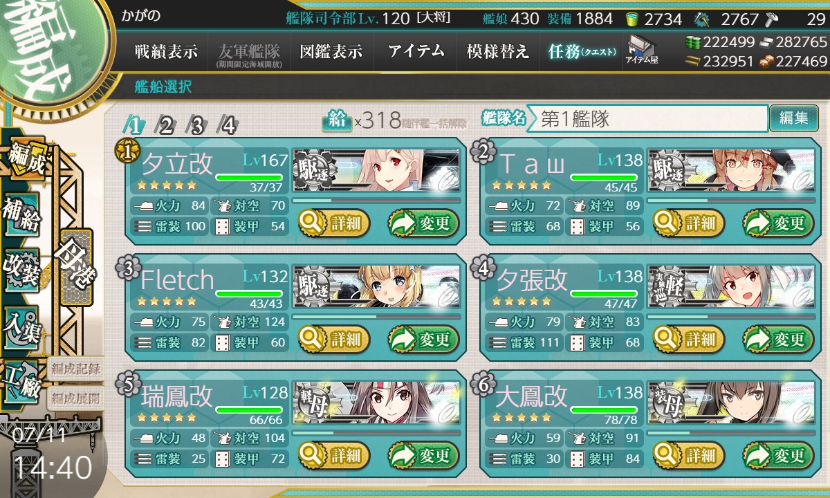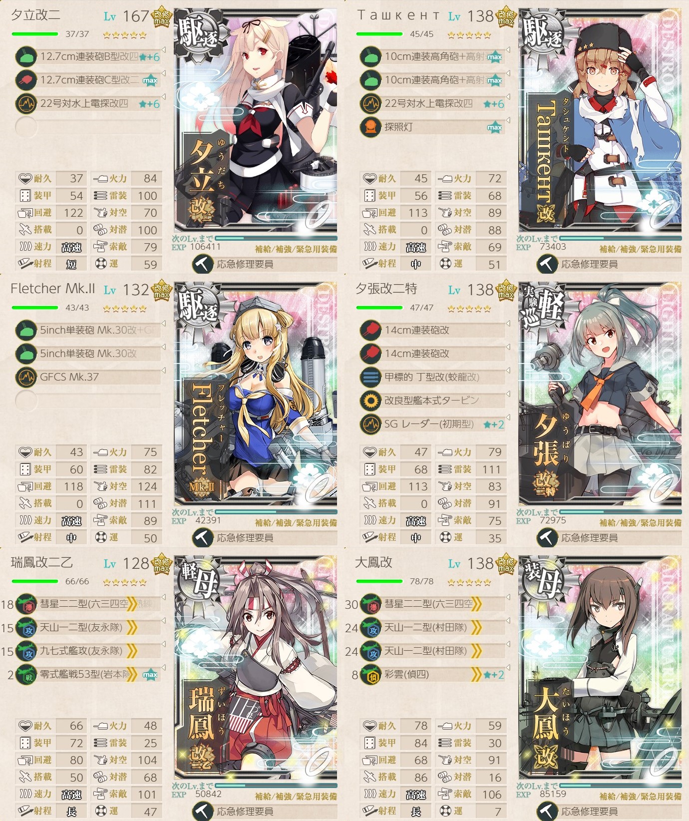 戦力的には問題なし。昼戦で終わらなくても夜戦でS勝利はとれると思います。