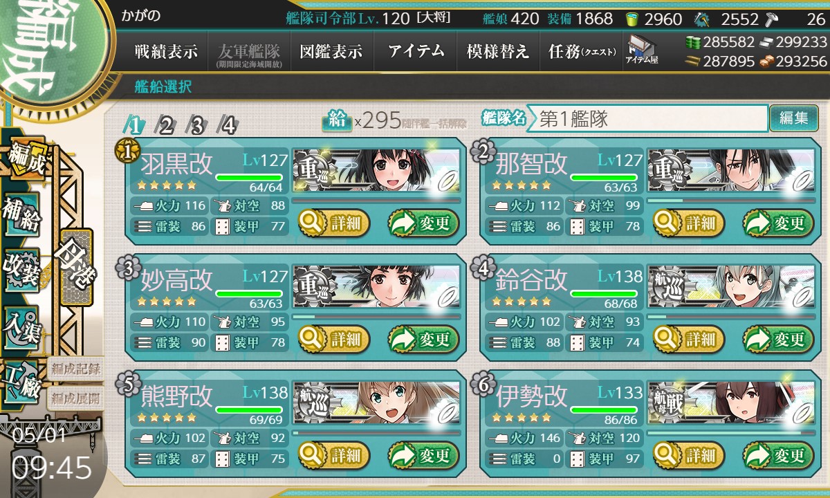艦これ2期のマンスリー任務「第五戦隊」出撃せよ!です。