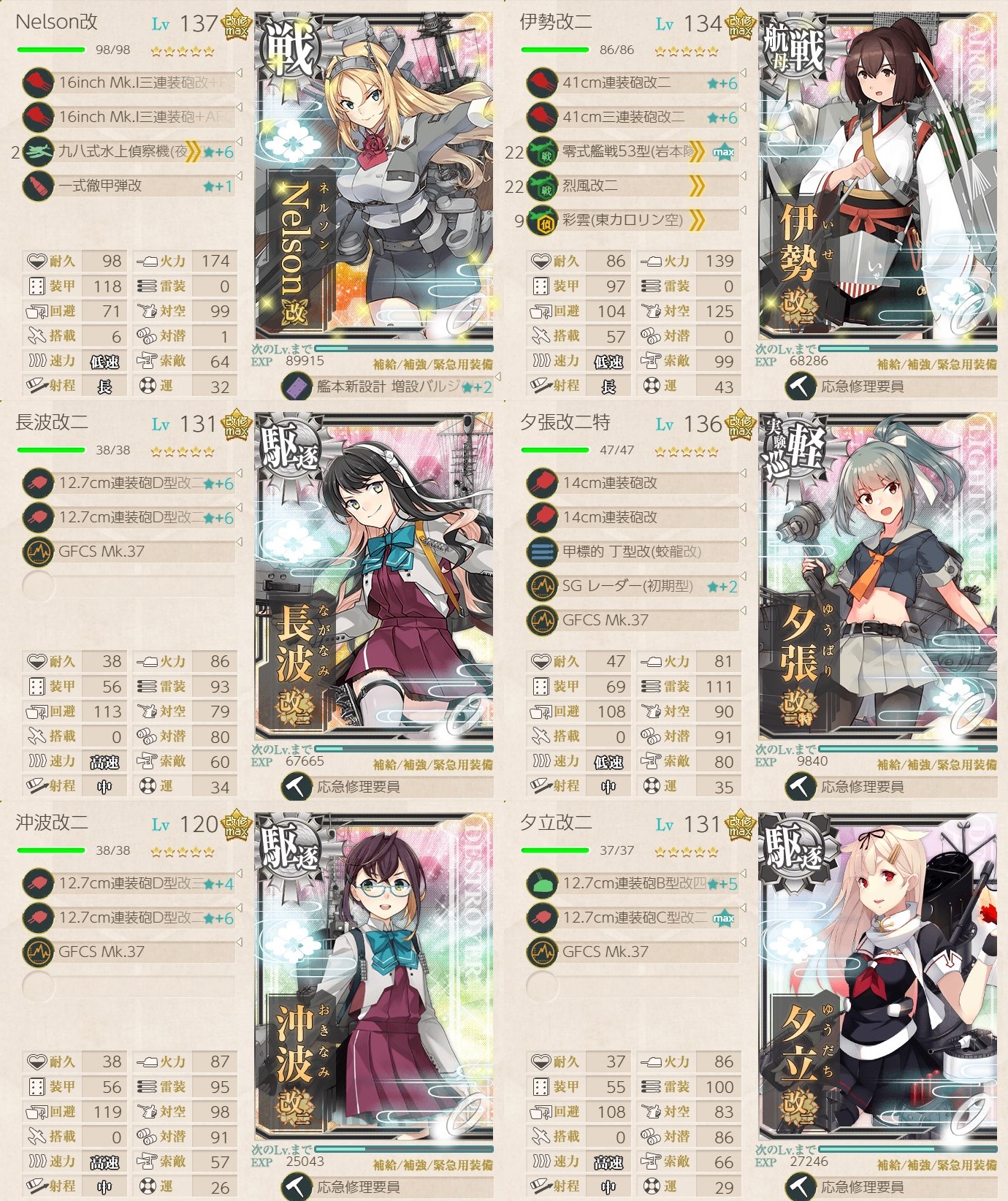 支援艦隊とネルソンタッチで夜戦マスを突破していきます。